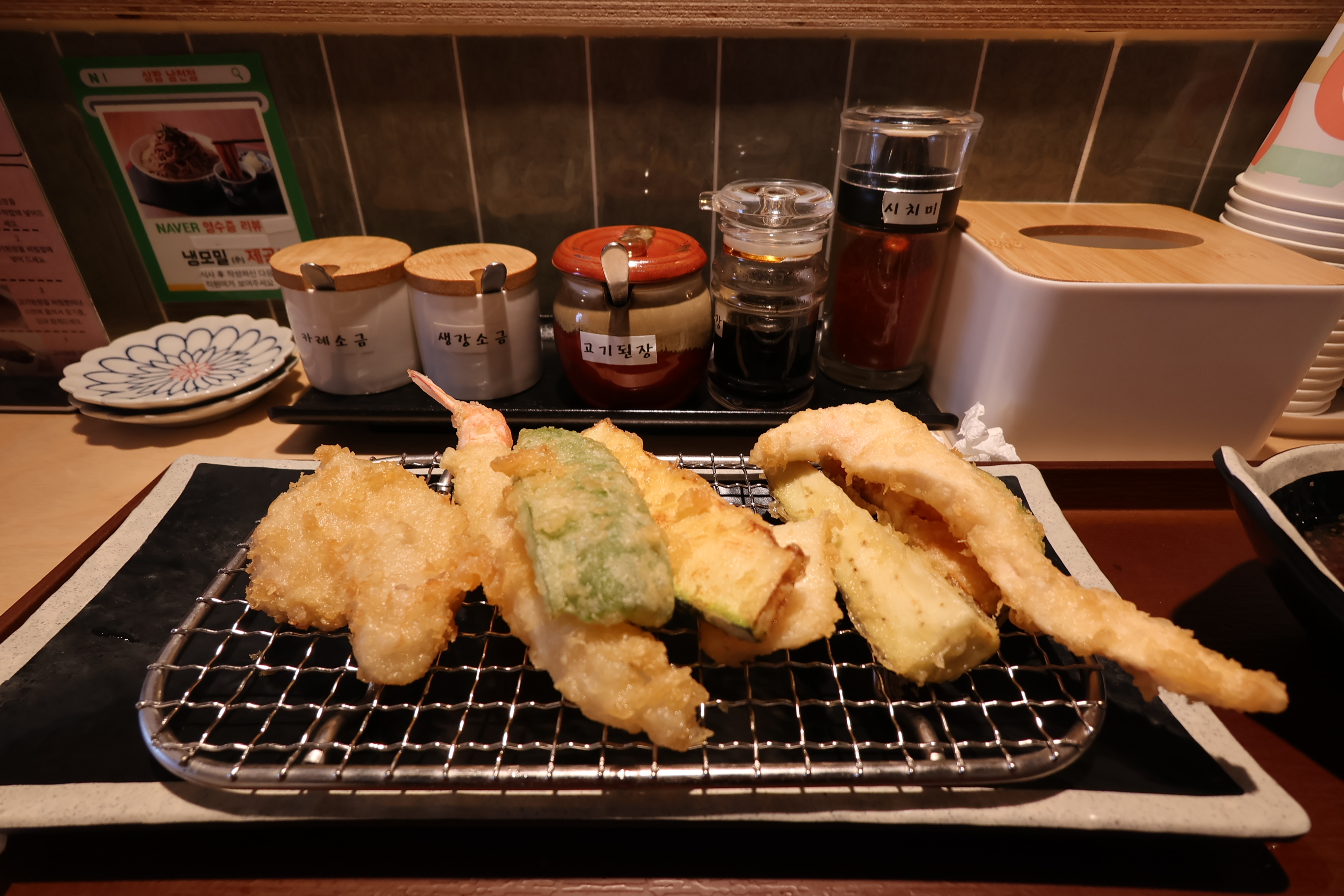 특히 새우튀김과 가지튀김, 그리고 반숙 계란 튀김은 정말 일품이었어요!